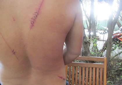 Anh Ngô Văn Tài với vết chém trên lưng (Ảnh A.D)