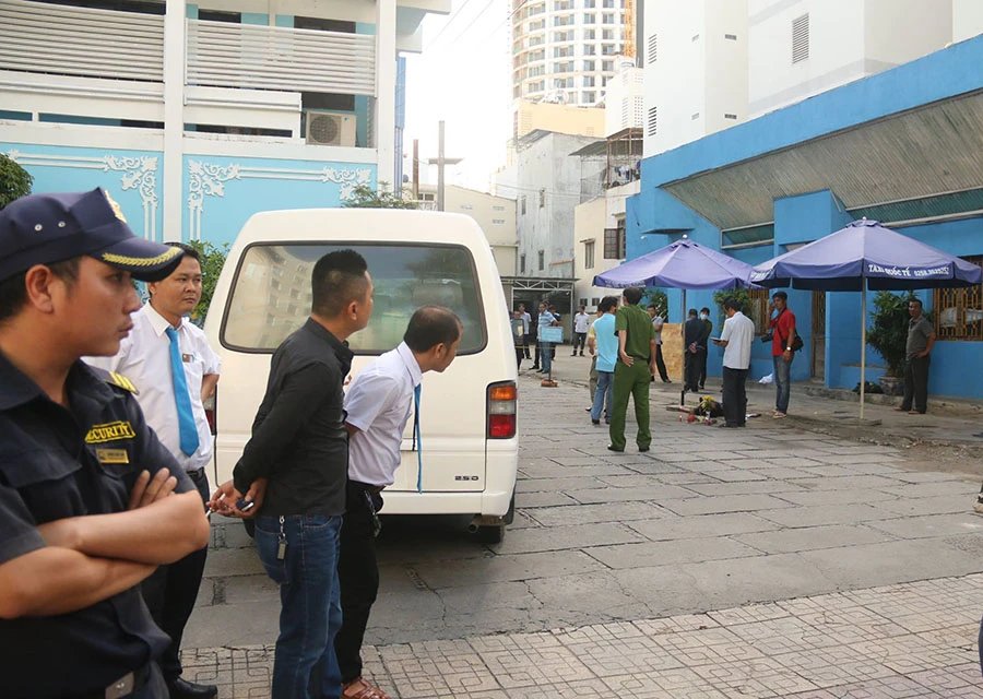 Ghi nhận tại hiện trường cho thấy Thủy chết tại lối vào vào khu massage của khách sạn Quốc Tế, nơi có đông người qua lại.