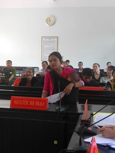 Người vợ và đứa con gái của bị cáo. Ảnh: LONG VIẾT