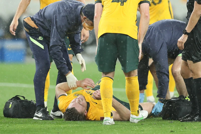 Trung vệ Harry Souttar bị chấn thương rất nặng ở trận tiếp Saudi Arabia chiều 11-11. Ảnh: H.S.M.T