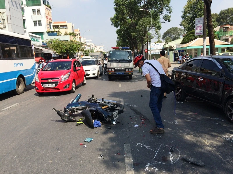 Đúng lúc đó, xe tải BKS: 57L-5697 do tài xế Tạ Công Nhường (25 tuổi, ngụ Thủ Đức) điều khiển từ phía sau lao tới. Tài xế Nhường liền đánh lái sang mé phải nhưng không kịp nên tông phải ba người vừa ngã xuống đường, đồng thời ép một xe biển xanh BKS: BKS 61M-000.87 vào sát lề đường.