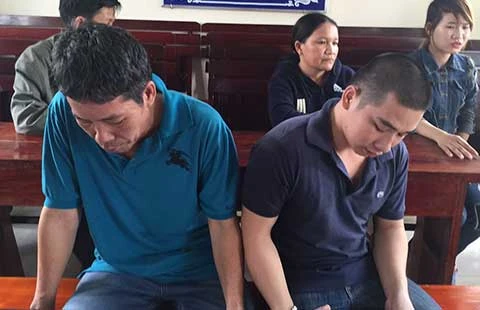 Hai bị cáo - tài xế Dương Văn Trắng (trái) và Mai Trường Giang tại tòa. Ảnh: PHƯƠNG LOAN
