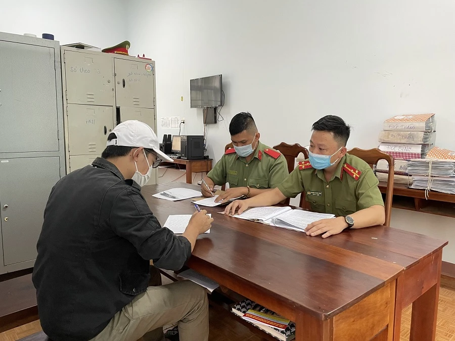Một trong hai người bị cơ quan chức năng mời lên làm việc. Ảnh QM