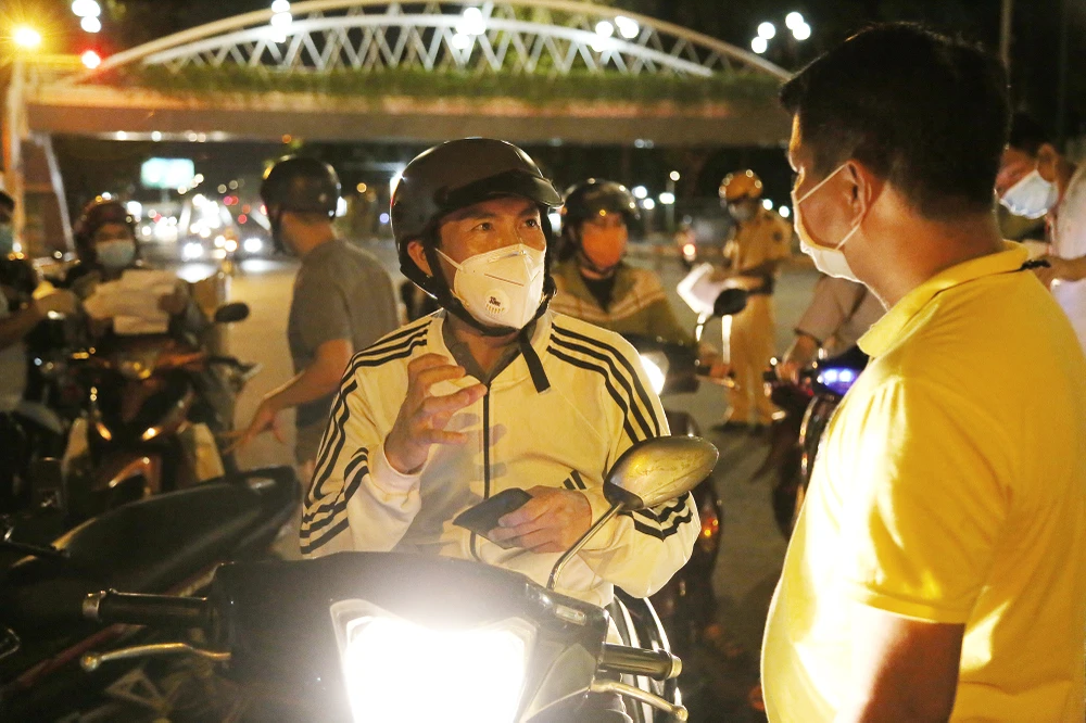 Các trường hợp ra đường không cần thiết sẽ được yêu cầu quay đầu. Nếu cố tình sẽ bị xử phạt. Ảnh: HOÀNG GIANG