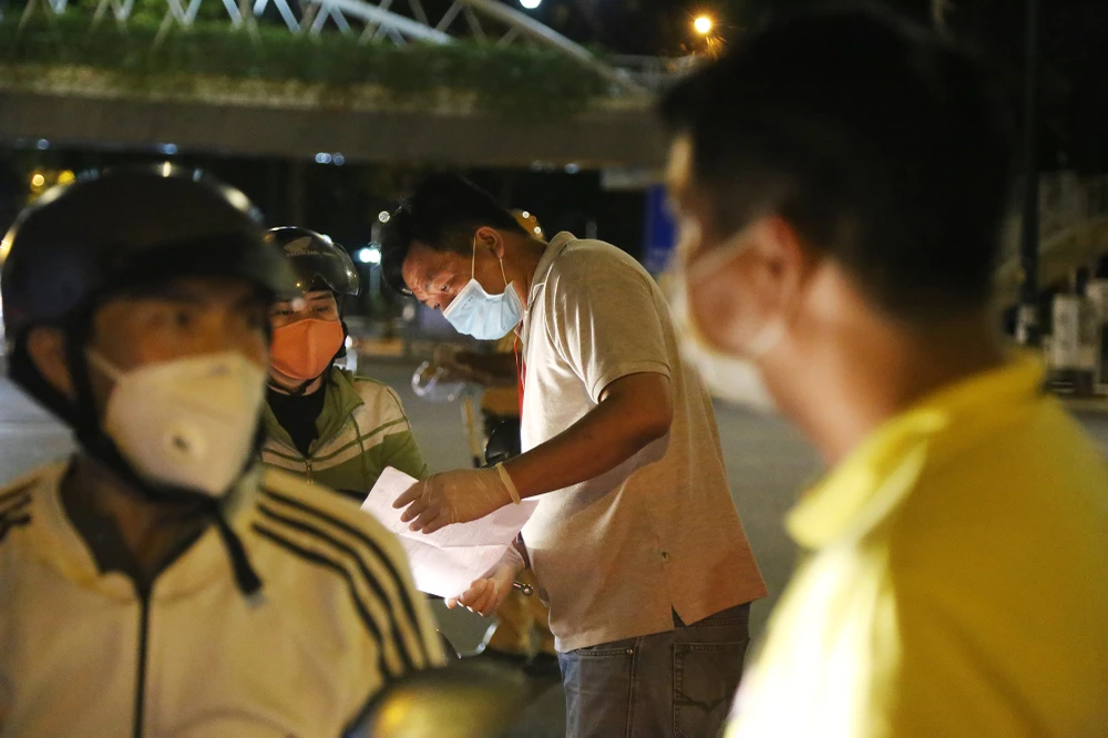 Tại đây, người dân được yêu cầu cung cấp lý do ra đường và các giấy tờ chứng minh. Trường hợp lý do ra đường không cần thiết hoặc sử dụng giấy xác nhận công việc không đúng quy định sẽ bị xử phạt.