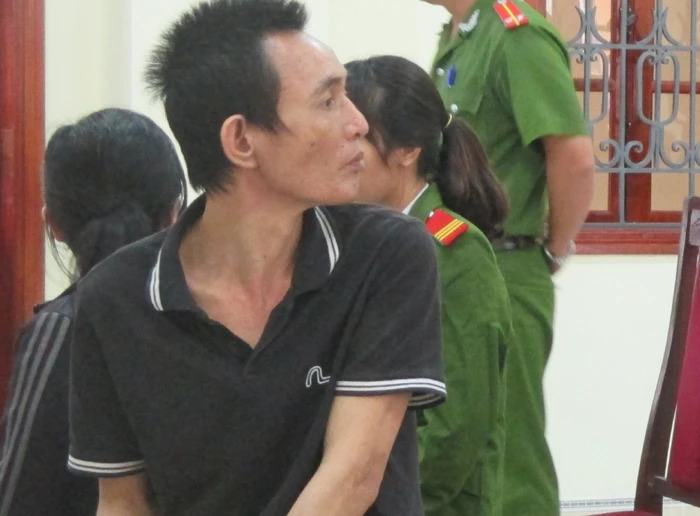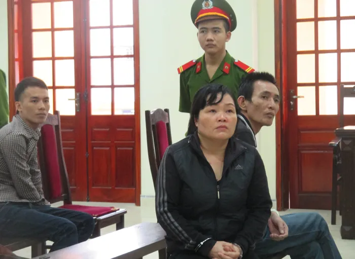 Ba bị cáo Bùi Văn Vãng (ngồi ngoài cùng bên phải), Lô Thị Thu (ngồi giữa) và Phùng Bá Dũng (ngồi ngoài cùng bên trái).