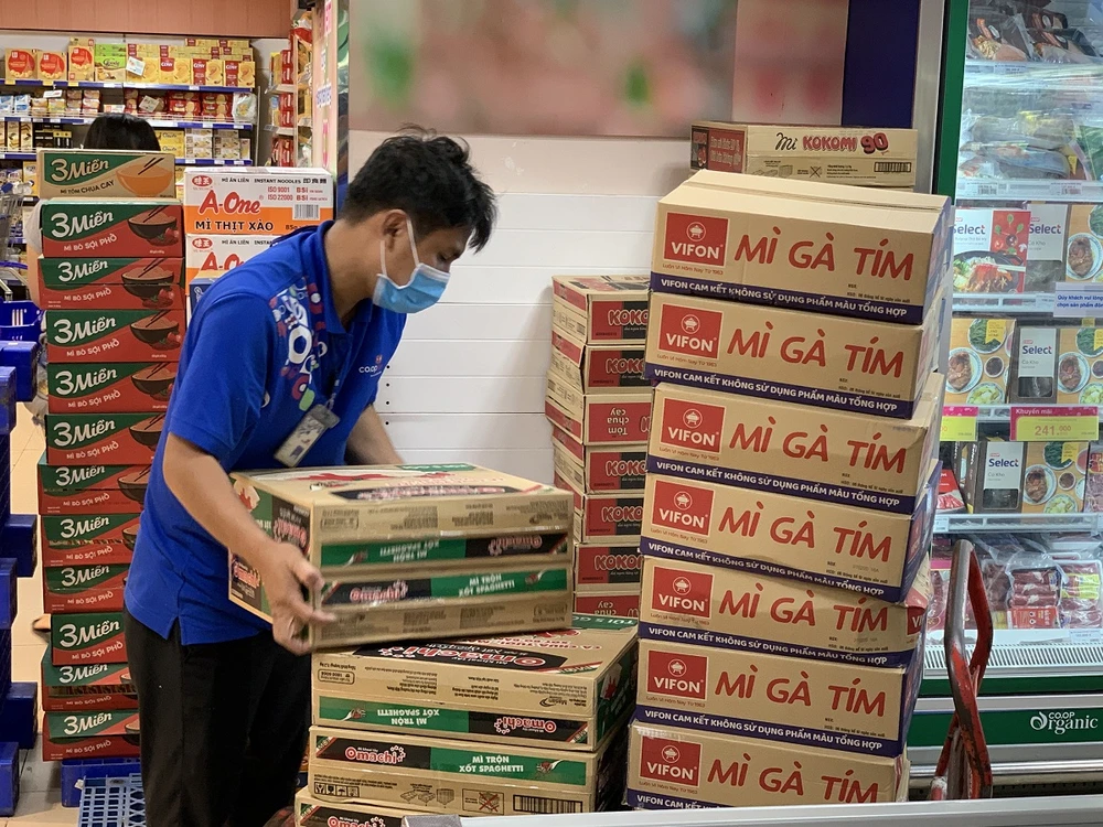 Nhiều mặt hàng thực phẩm như mì ăn liền bán khá chạy trong mùa dịch. Ảnh: TL