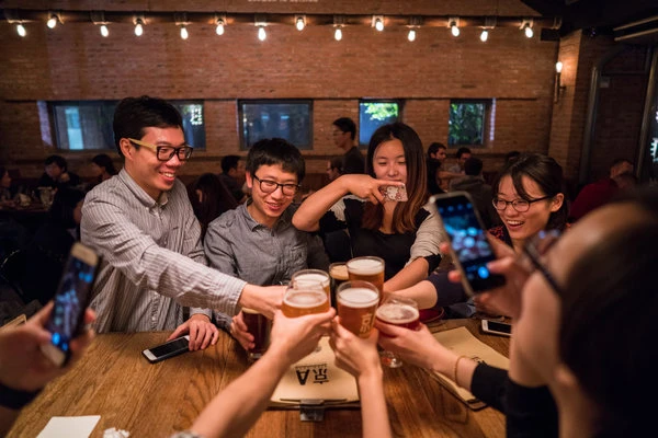 Khách uống bia tại nhà hàng Jing-A Brewing. (Ảnh: NEW YORK TIMES)