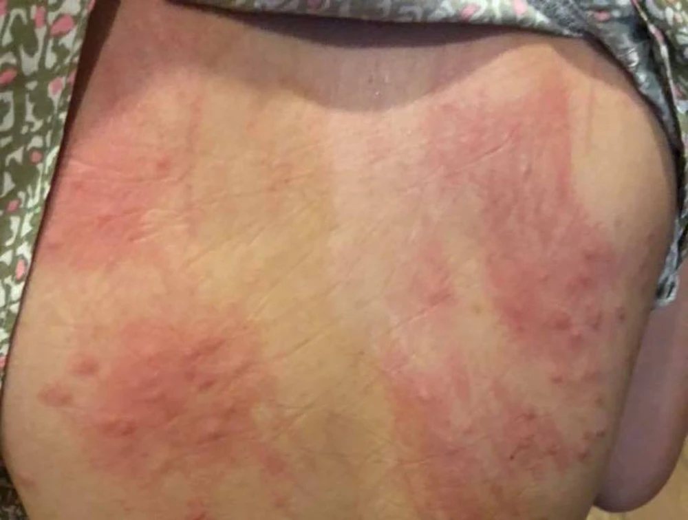 Một người bị nổi mẩn đỏ, ngứa ngáy sau khi tắm biển tại Đà Nẵng. Ảnh: FACEBOOK