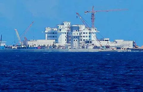 ĐBQH Dương Trung Quốc cho rằng hành động xây dựng trái phép của Trung Quốc hiện nay nghiêm trọng hơn cả vấn đề kéo giàn khoan Hải Dương 981 vào vùng biển nước ta năm 2014. Trong ảnh: Trung Quốc đang ráo riết xây dựng, cải tạo trên đảo Huy Gơ (còn gọi là đá Tư Nghĩa thuộc quần đảo Trường Sa của Việt Nam). Ảnh: VIỄN SỰ (Tuổi Trẻ)