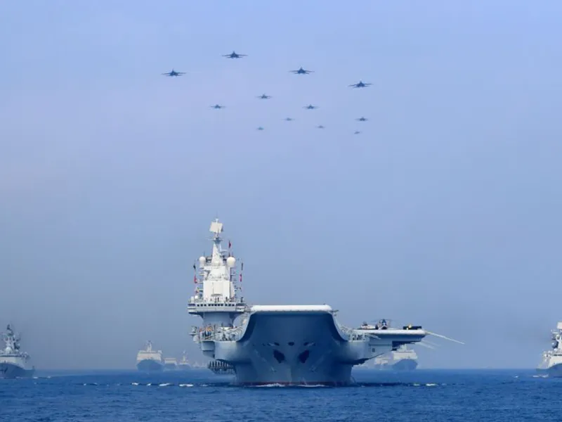 Tàu hải quân, máy bay chiến đấu Trung Quốc trong một lần xuất hiện ở Biển Đông. Ảnh: REUTERS