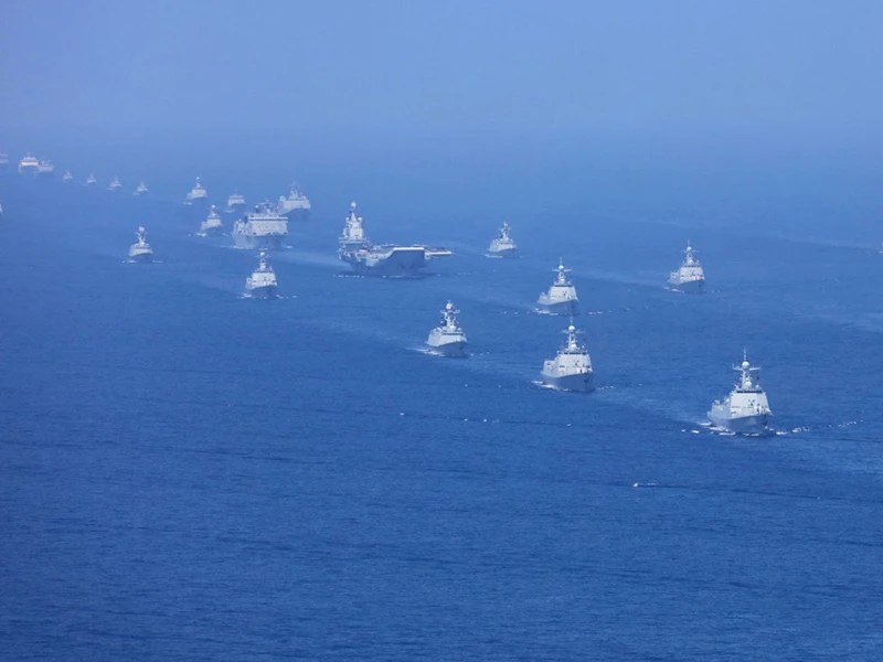 Tàu chiến TQ tập trận trên Biển Đông hồi tháng 7-2016: Ảnh: TÂN HOA XÃ