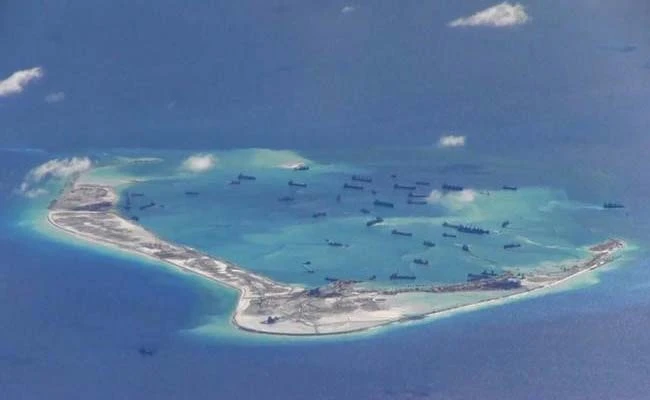 Tàu Trung Quốc nạo vét và xây đảo trái phép ở quần đảo Trường Sa. (Ảnh: Reuters)