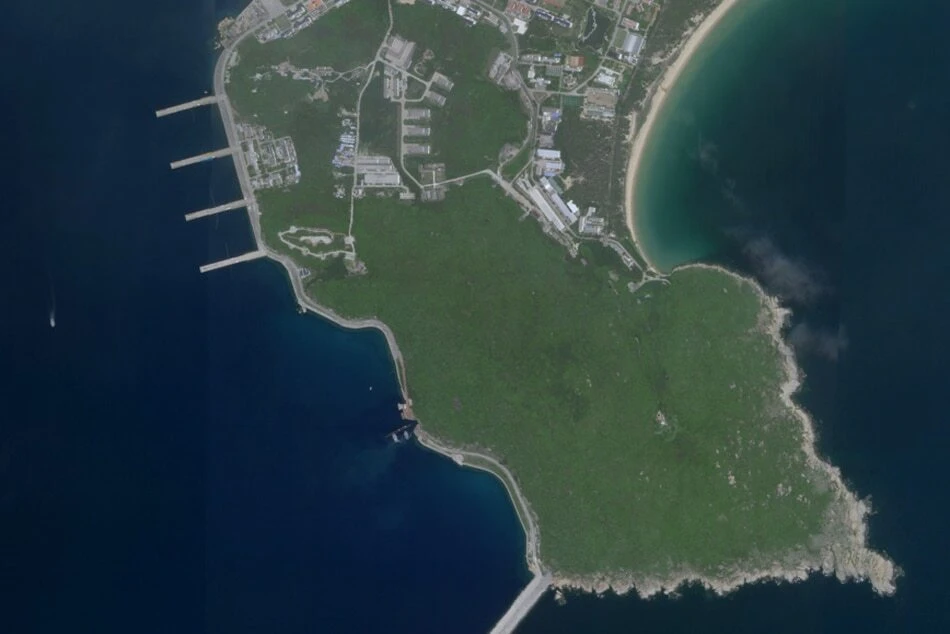 Hình ảnh vệ tinh hồi tháng 8-2020 cho thấy một tàu ngầm Type 093 của Trung Quốc đang tiến vào một căn cứ ngầm trên đảo Hải Nam trên Biển Đông. Ảnh:  PLANET LABS / AFP