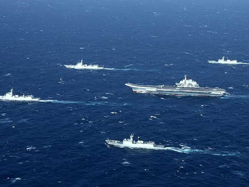 Một đội hình tàu chiến Trung Quốc tập trận ở biển Đông hồi tháng 1-2017. Ảnh: AFP