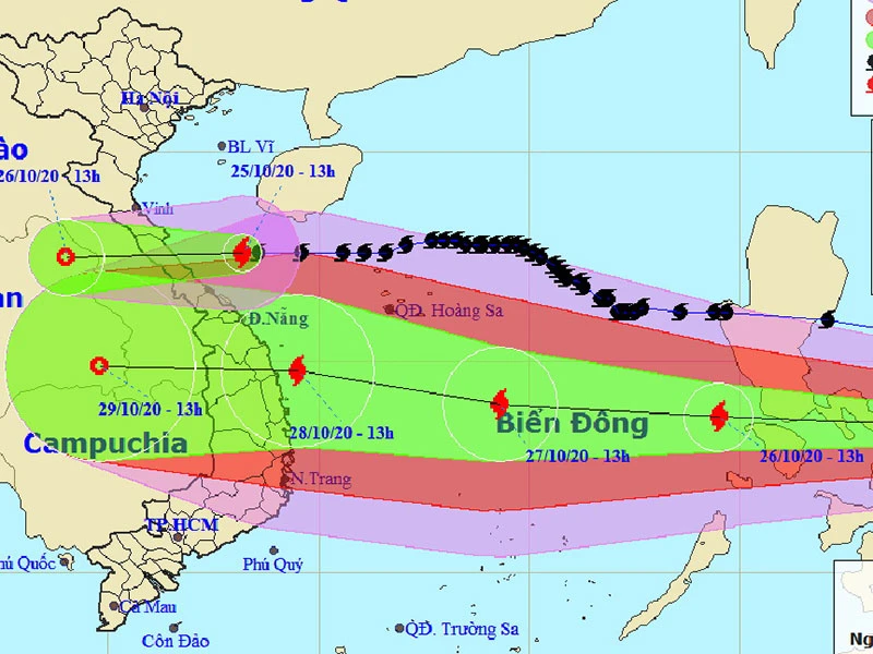 Trong đêm 25 đến rạng sáng 26-10, bão số 8 khi đi vào đất liền các tỉnh từ Hà Tĩnh đến Quảng Trị thì suy yếu thành áp thấp.