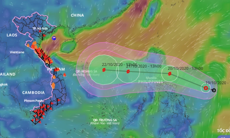 Dự báo đến 13 giờ ngày 21-10, vị trí tâm bão cách quần đảo Hoàng Sa khoảng 620 km về phía đông đông nam. Sức gió mạnh nhất vùng gần tâm bão mạnh cấp 8-9, giật cấp 11. Các chuyên gia khí tượng dự báo, nhiều khả năng cơn bão này tiếp tục hướng vào miền Trung nước ta, gây đợt mưa lớn.