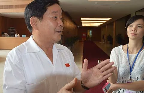 Ông Trần Văn Hằng đang trao đổi với báo chí bên hành lang Quốc hội sáng 2-6. Ảnh: NGHĨA NHÂN