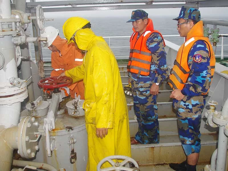Chống buôn lậu dung môi, xăng dầu trên biển là công việc gian nan của lực lượng cảnh sát biển. Ảnh: T.HẰNG