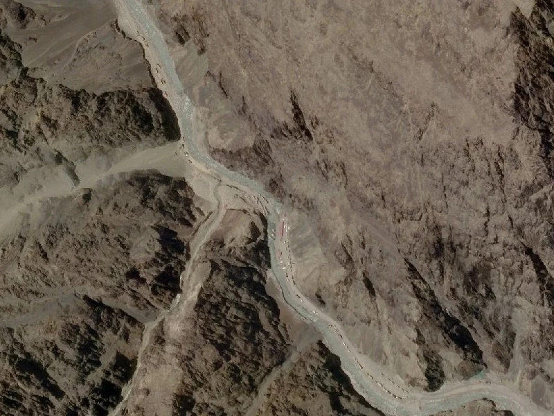 Ảnh vệ tinh chụp ngày 16-6 cho thấy cả Trung Quốc và Ấn Độ đang tăng cường quân tới khu vực biên giới tranh chấp. Ảnh: AFP