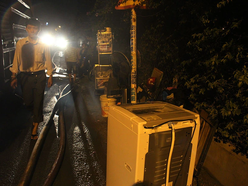 Do xưởng gỗ nằm ở giữa khu dân cư, người dân xung quanh sợ lửa cháy lan nên vội vã di chuyển đồ đạc trong đêm, điện bị cắt nên khu vực khá hỗn loạn.