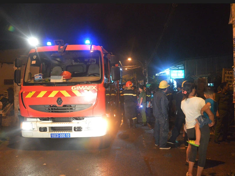 Nhận được tin báo, lực lượng PCCC quận 12 điều hơn năm xe cứu hỏa cùng hàng chục cán bộ, chiến sĩ đến hiện trường để triển khai công tác cứu hộ.