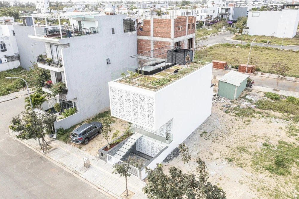 (PLO)- Kiến trúc sư sử dụng toàn bộ mái nhà để trồng rau nhằm chống nóng cho các tầng dưới và chống nứt bê tông.