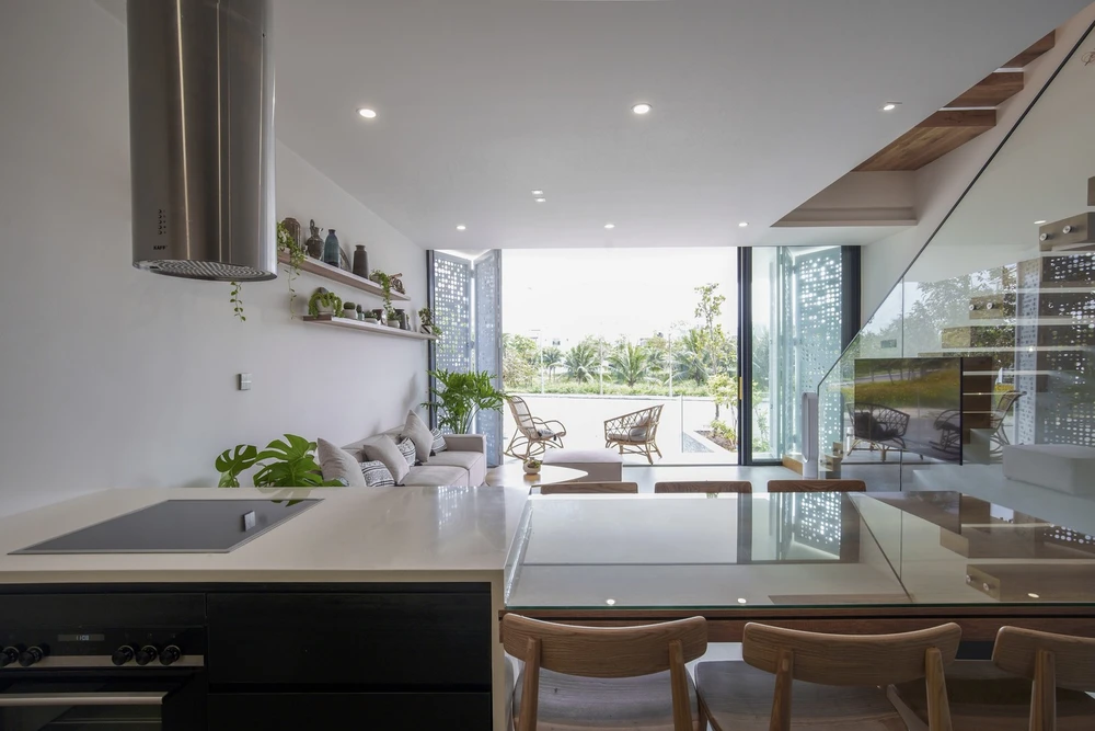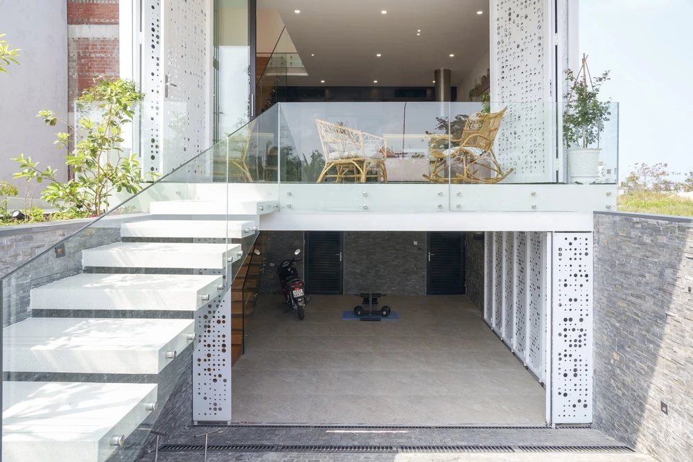 Thay vì xây cao tầng, KTS sử dụng thiết kế bán hầm để tối ưu diện tích sử dụng mà không làm tăng chiều cao tổng thể.