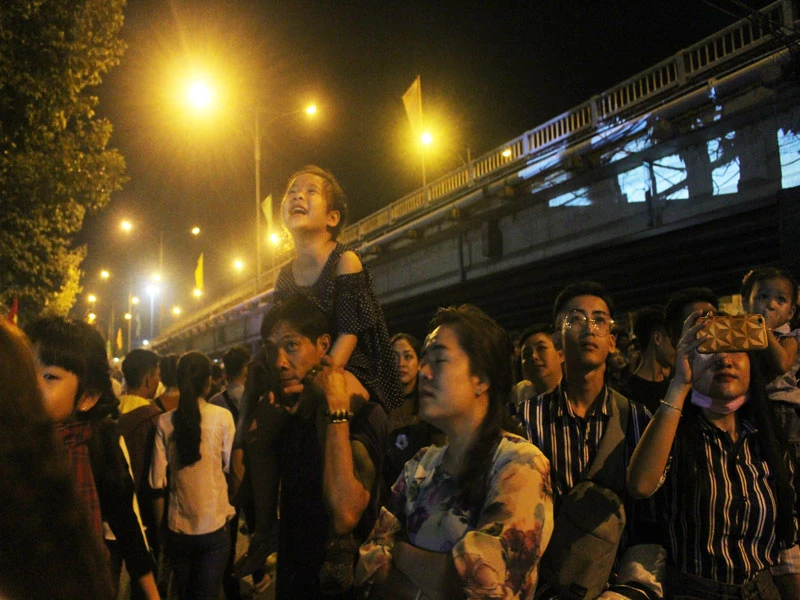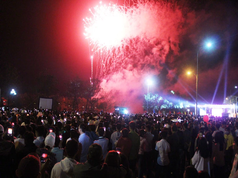 Càng gần đến thời khắc giao thừa, dòng người càng nhộn nhịp hơn trên tuyến đường dài hơn 1km. Kết thúc chương trình nghệ thuật, người dân đã được tận mắt ngắm màn pháo hoa rực rỡ trên bầu trời. Những khuôn mặt rạng rỡ bừng sáng, mọi người đều tranh thủ ghi lại khoảnh khắc giao nhau giữa năm cũ và năm mới.