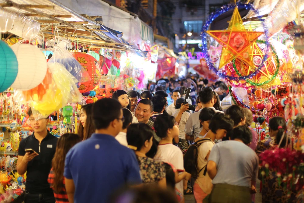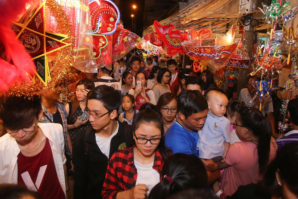 Những ngày này người dân TP.HCM và các vùng lân cận đã bắt đầu đổ về phố lồng đèn đường Lương Nhữ Học (quận 5, TP.HCM) để ngắm lồng đèn và lưu lại những hình ảnh trong mùa Trung thu.