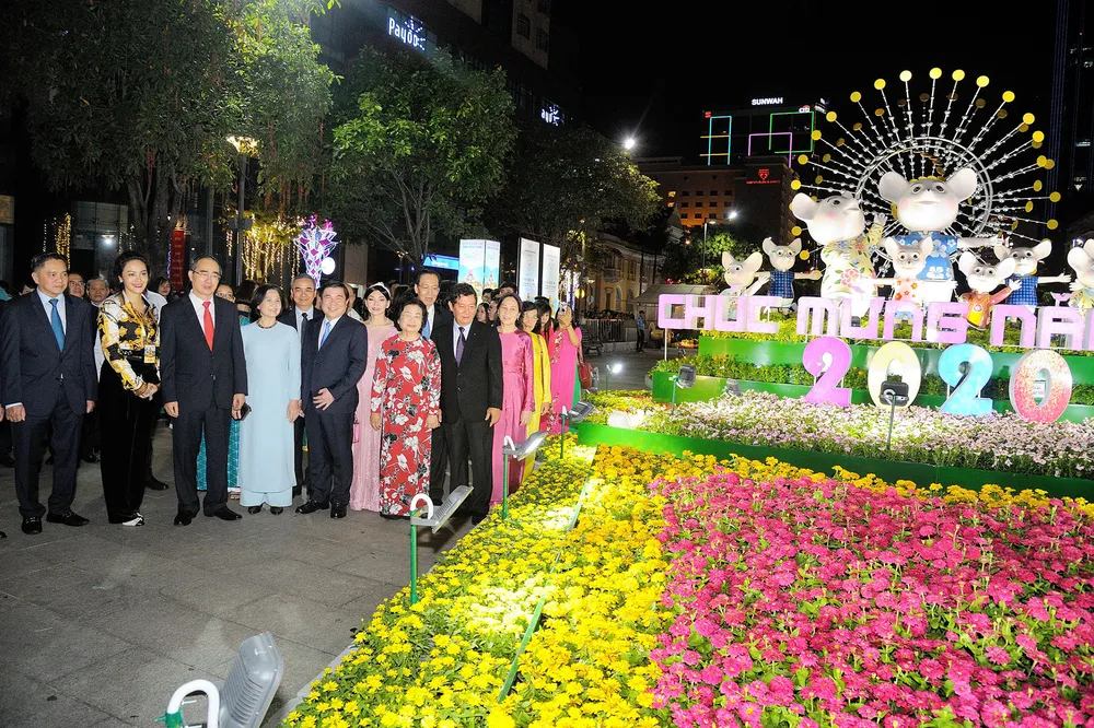 Nguyên Chủ tịch nước Trương Tấn Sang; Bí thư Thành ủy TP.HCM Nguyễn Thiện Nhân; nguyên Phó Chủ tịch nước Trương Mỹ Hoa; Chủ tịch UBND TP Nguyễn Thành Phong, cùng nhiều lãnh đạo, nguyên lãnh đạo trung ương, TP.HCM tham quan đường hoa.