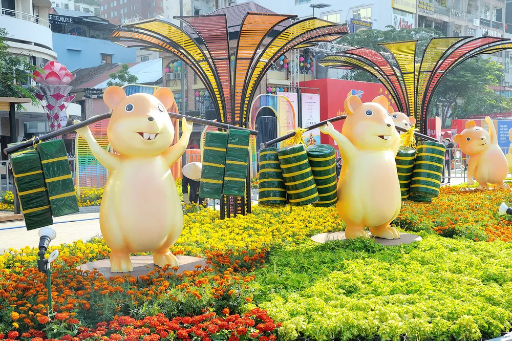 Những chú chuột gánh bánh tét, bánh chưng ở đường hoa.
