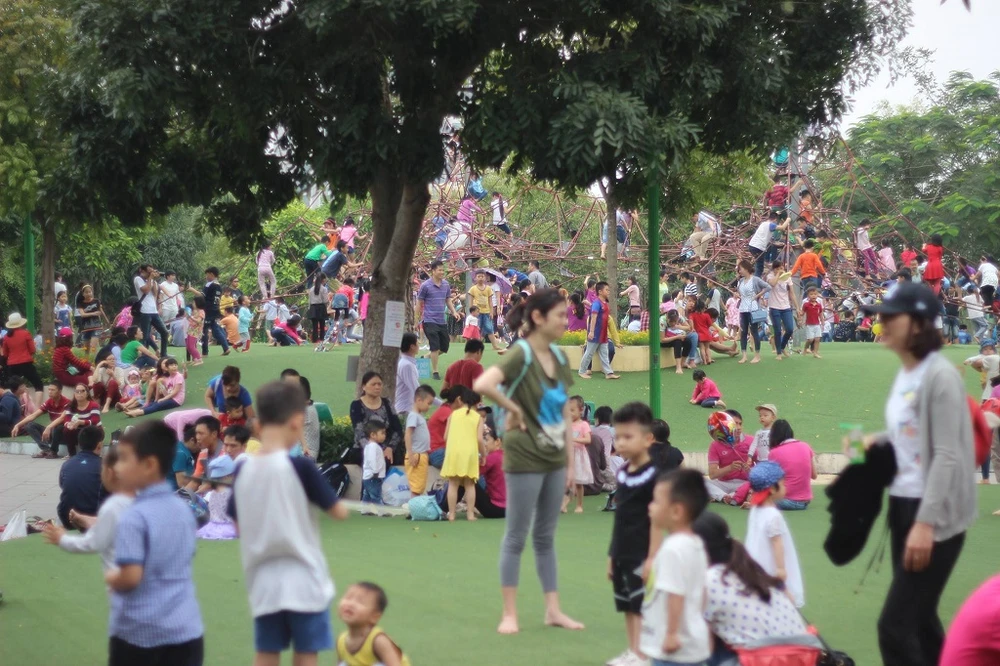 Lượng người đổ về đông khiến các công viên trở thành những "biển người". Do quá đông, thậm chí là phải chen lấn, một số phụ huynh và em nhỏ tỏ ra khá mệt mỏi.