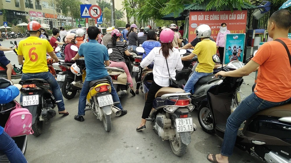 Lượng xe máy cũng đông không kém. Tranh thủ ngày nghỉ, nhiều phụ huynh đã đưa con em mình tới công viên để vui chơi. Bởi lượng người rất đông, nhiều phụ huynh phải xếp hàng đợi mới đến lượt gửi xe.