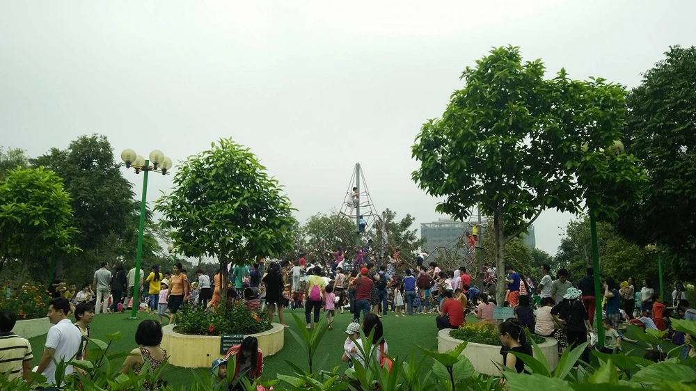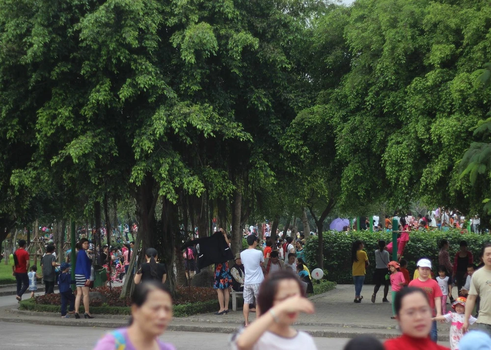 Ngày 10-3, ghi nhận tại một số công viên như Cầu Giấy, Nghĩa Đô, Bách Thảo, Thống Nhất..., lượng người đổ về các khu vực vui chơi công cộng này tăng đột biến.