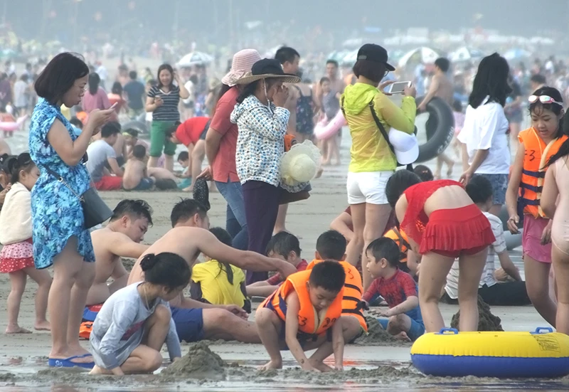 Người dân chen chân đổ về Sầm Sơn trong ngày đầu kỳ nghỉ lễ.