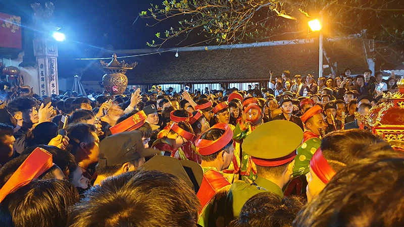 Người dân và du khách thập phương chen lấn, trong khi lực lượng chức năng và những người có nhiệm vụ bảo vệ kiệu lễ gặp nhiều khó khăn. Ảnh: ĐẶNG TRUNG