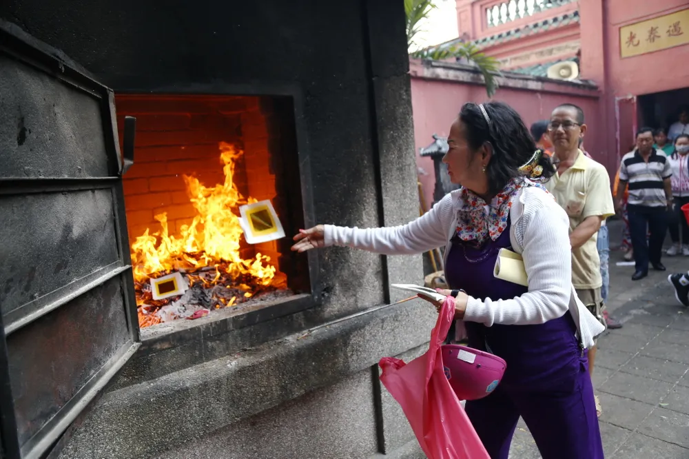 Sau khi cúng tại các điện thờ, nhiều người tiến ra đốt vàng mã tại lò đốt đặt trong khuôn viên chùa.