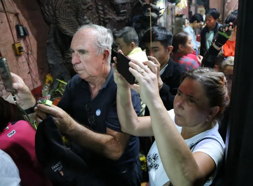 Khách nước ngoài ghi lại cảnh hàng nghìn người chen nhau viếng chùa Ngọc Hoàng.