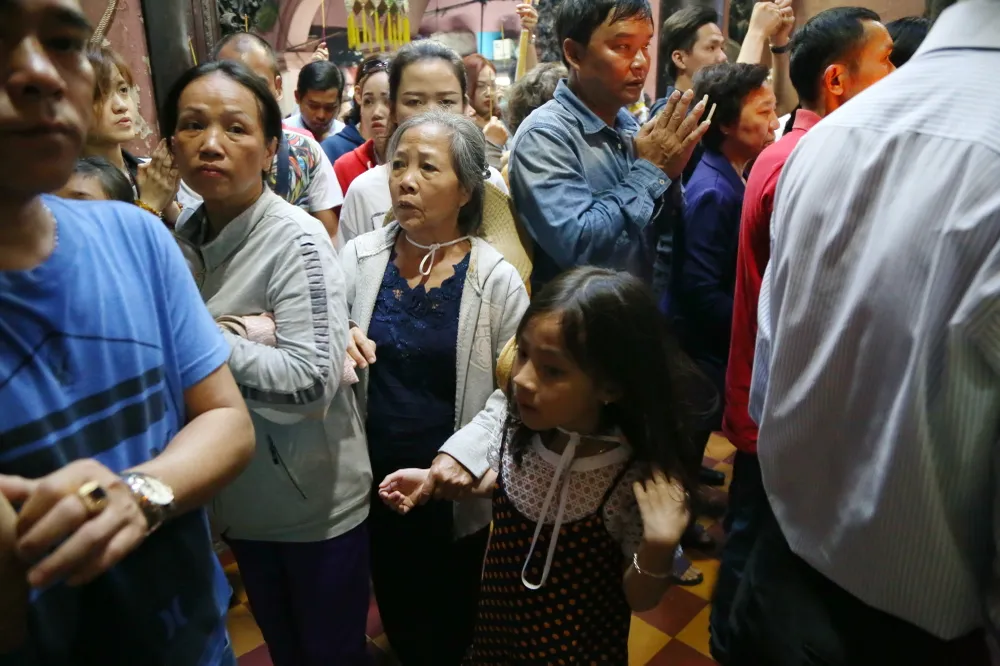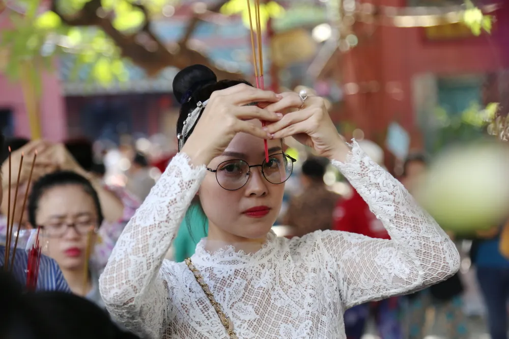Hàng nghìn người đến viếng chùa trong cái nắng oi bức của Sài Gòn buổi trưa.
