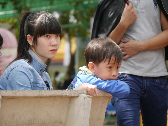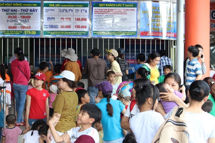 Nhiều gia đình dẫn theo con nhỏ do quá đông người và không thể chen theo nên đành dừng chân tại ngay phía trước công viên, số khác thất vọng quay đầu xe bỏ về. Chị Phan Nguyệt Liên (Thuận An- Bình Dương) đi cùng chồng và 2 con, do thời tiết quá nắng, lượng người lại đông đã khiến 2 cháu nhỏ mệt mỏi. Gia đình chị quyết định nghỉ mệt ở quầy nước phía ngoài, đợi vãn người thì sẽ ra về.