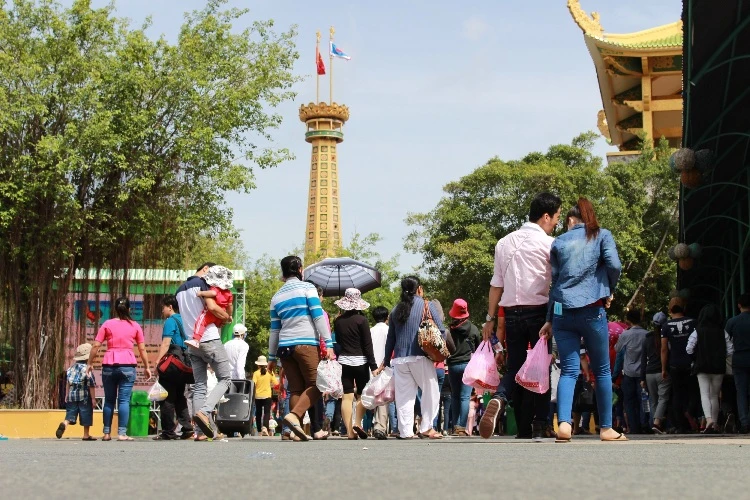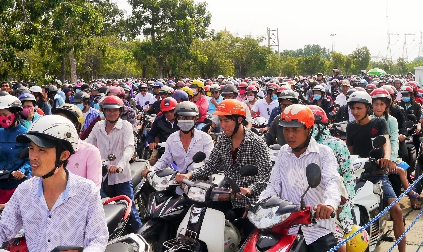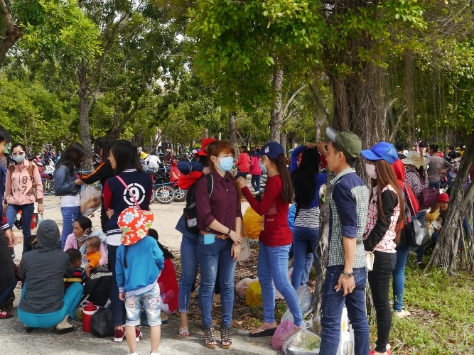 Theo ghi nhận của chúng tôi, từ 8h30 sáng nay đã có một lượng người và xe đông đảo đổ dồn về khu vực cổng chính KDL Đại Nam (Bình Dương). Dòng người này chủ yếu là các gia đình có đông thành viên, những nhóm bạn đi thành từng tốp, tất cả đã khiến các bãi giữ xe tại đây không còn chỗ trống dù phía KDL đã lường trước tình huống.