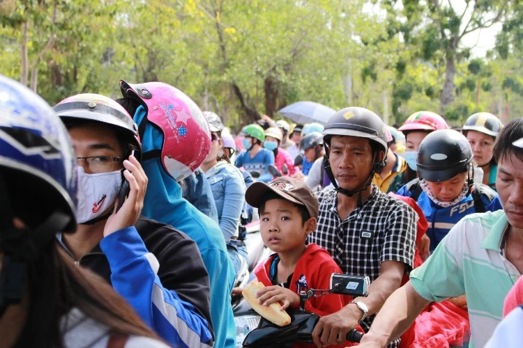 Từ cổng chính, một đội phản ứng nhanh thuộc lực lượng cảnh sát cơ động Bình Dương đã được huy động nhằm đảm bảo an ninh, trật tự. Trời càng về trưa, nắng nóng càng dữ dội và dòng người đổ về mỗi lúc một đông hơn. Trong cái nắng 35 độ C, khói xe, hàng ngàn con người…. khiến khung cảnh trở nên bức bối, ngột ngạt.