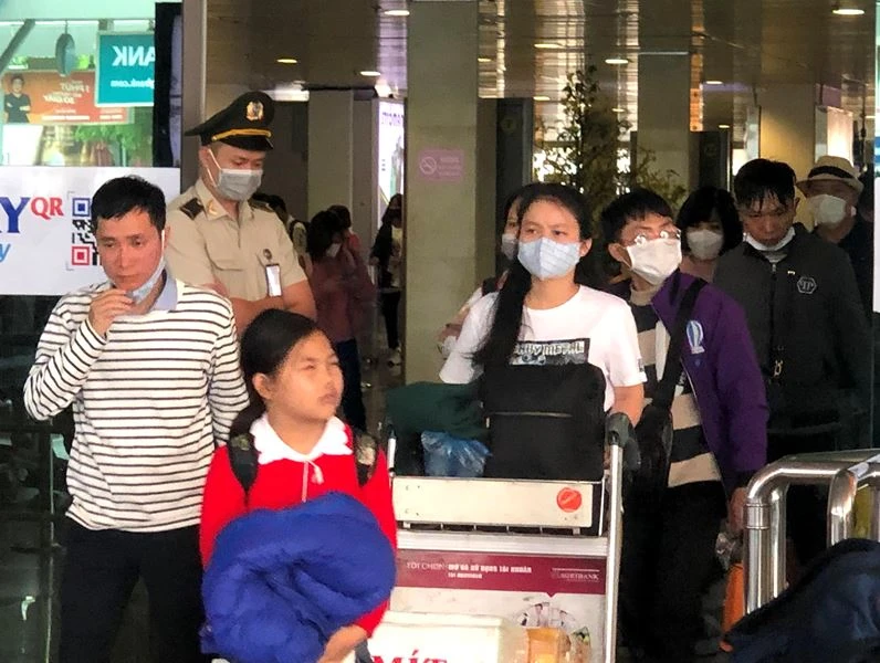 Trước diễn biến phức tạp của dịch viêm phổi cấp do nhiễm virus Corona, nhiều hành khách xuống máy bay vẫn bịt khẩu trang khi thoát ra bên ngoài.