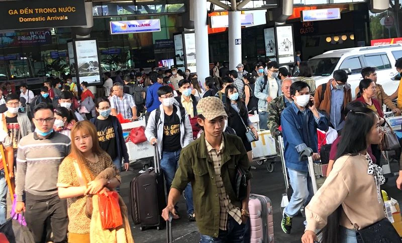 Biển người rời sân bay Tân Sơn Nhất mùng 6 tết. Ảnh: P.ĐIỀN