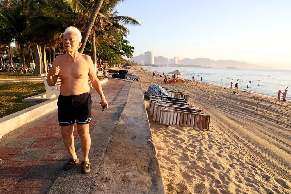 Ông Nguyễn Ngọc Hòa, 88 tuổi, ở phường Phương Sài ra biển từ rất sớm cho biết: “Cánh hưu trí chúng tôi yêu biển lắm, sáng nào cũng ra biển tập thể dục, hít thở không khí trong lành. Do phải đảm bảo công tác phòng, chống dịch nên không được tắm biển hơn một tháng qua, nhớ biển lắm. Nhưng mình phải gương mẫu chấp hành các quy định về giãn cách xã hội của Chính phủ và của tỉnh, nay ra biển trở lại phấn khởi lắm”.