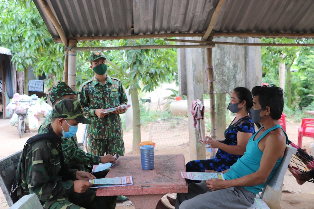 Đồn Biên phòng cửa khẩu Long Bình “đi từng ngõ, gõ cửa từng nhà” tuyên truyền, vận động người dân phòng, chống dịch.