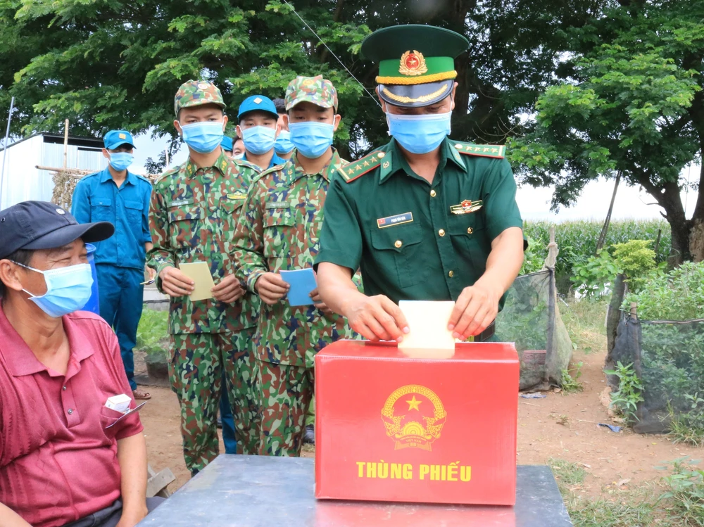 Với lực lượng cán bộ, chiến sĩ biên phòng An Giang, ngoài các thùng phiếu cố định tại Tổ bầu cử, nhiều thùng phiếu di động được đem đến trực tiếp tại từng tổ, chốt phòng chốt dịch, không để chậm trễ tiến độ bỏ phiếu.