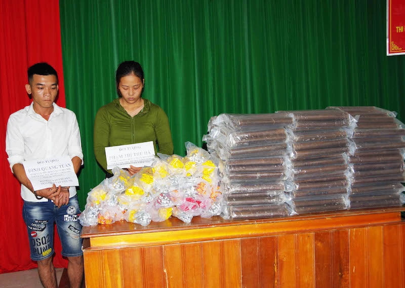 Tuấn và Hà bị bắt quả tang vận chuyển 97 kg thuốc nổ. Ảnh: HA