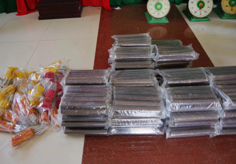 97 kg thuốc nổ và 1.000 kíp nổ bị thu giữ. Ảnh: HA